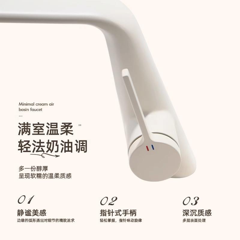 Robinet de lavabo en cuivre, monocommande, bec de 135 mm, montage sur plan, eau chaude et froide, design minimaliste
