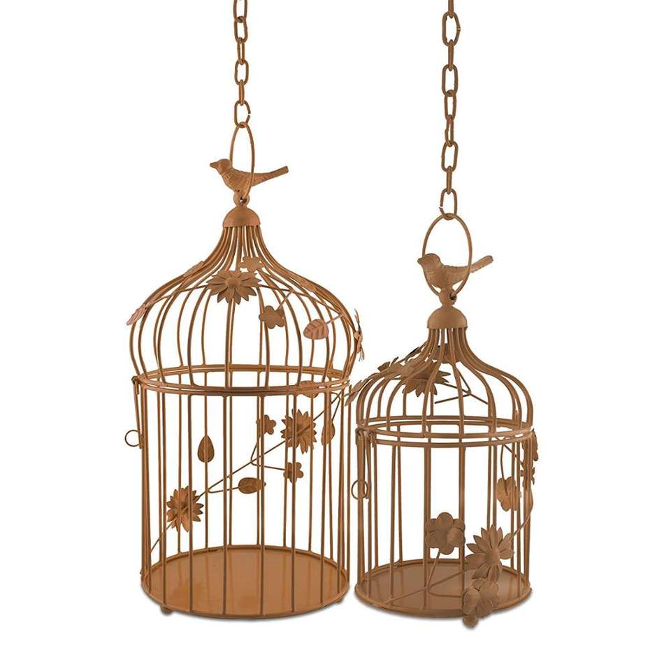 Nom du produit:Cage à oiseaux en cuivre avec vigne florale (Ensemble de 2), avec suspension