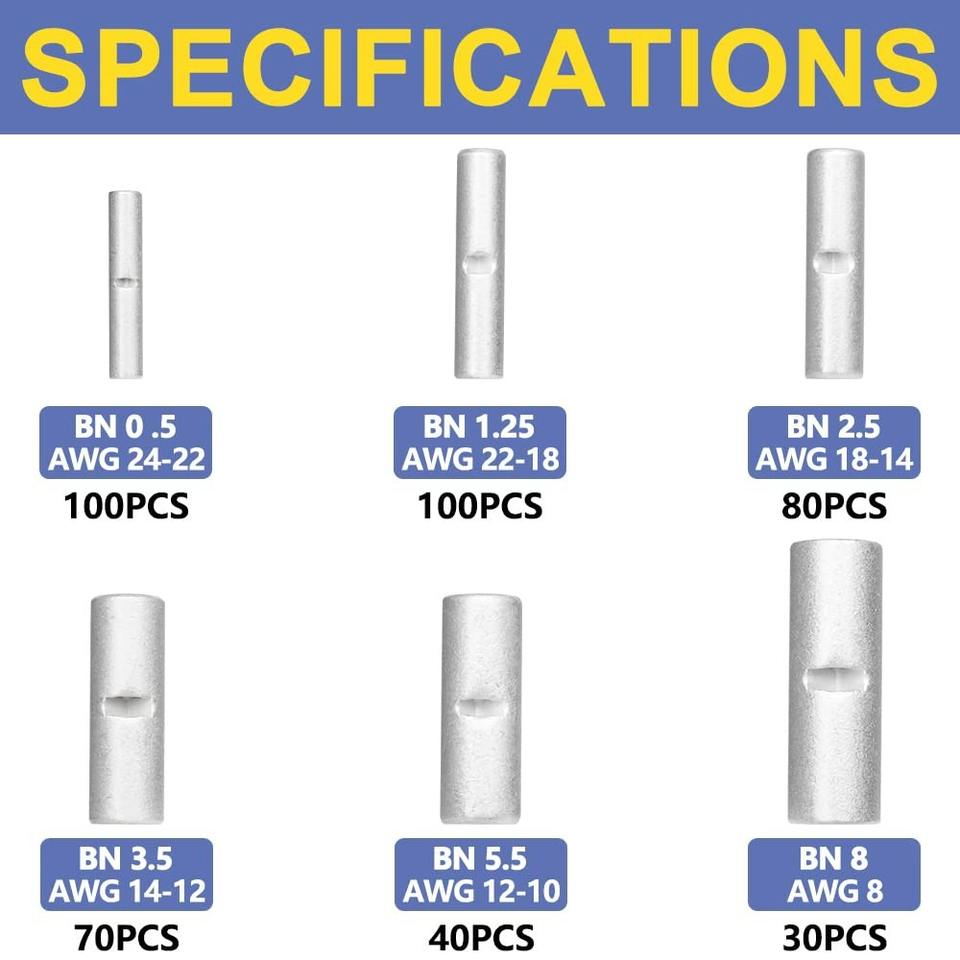 Kit de connecteurs à sertir en cuivre, 420 pièces, connecteurs de fils non isolés BN0.5 1.25 2.5 3.5 5.5 8 pour câblage électrique