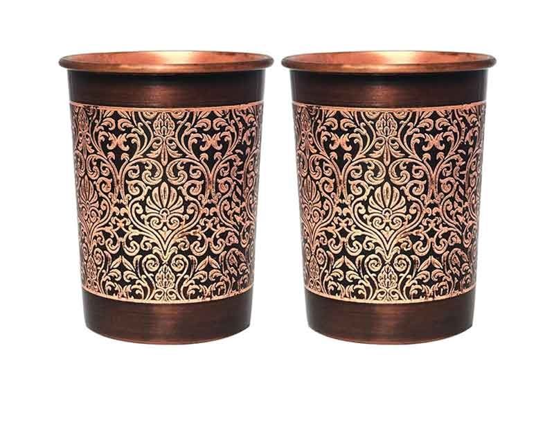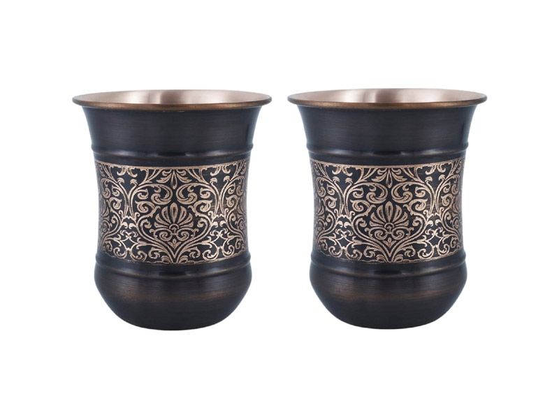 Verre à eau artisanal élégant en cuivre gaufré foncé de 275 ml, vaisselle ayurvédique en cuivre pour usage quotidien