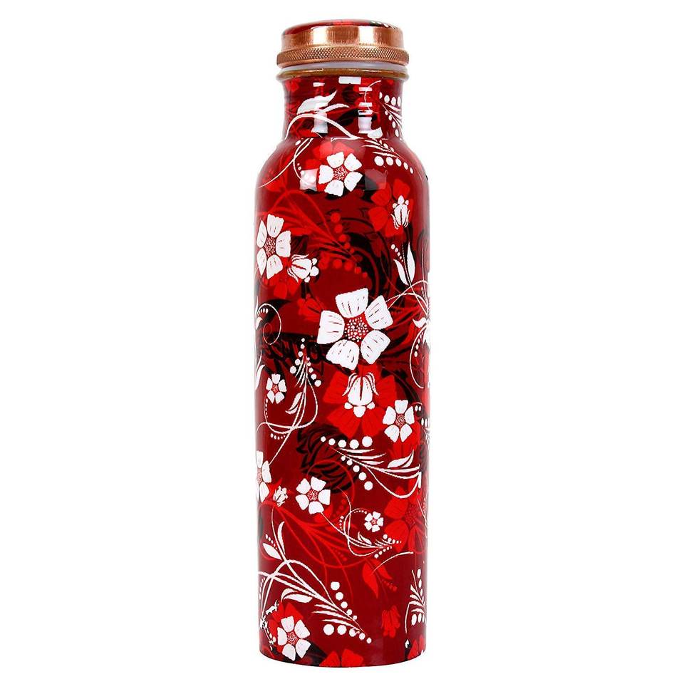 Bouteille d'eau en cuivre personnalisable avec logo couleur, pour usage promotionnel, bienfaits pour la santé, impression émaillée, anti-fuite, à boire directement