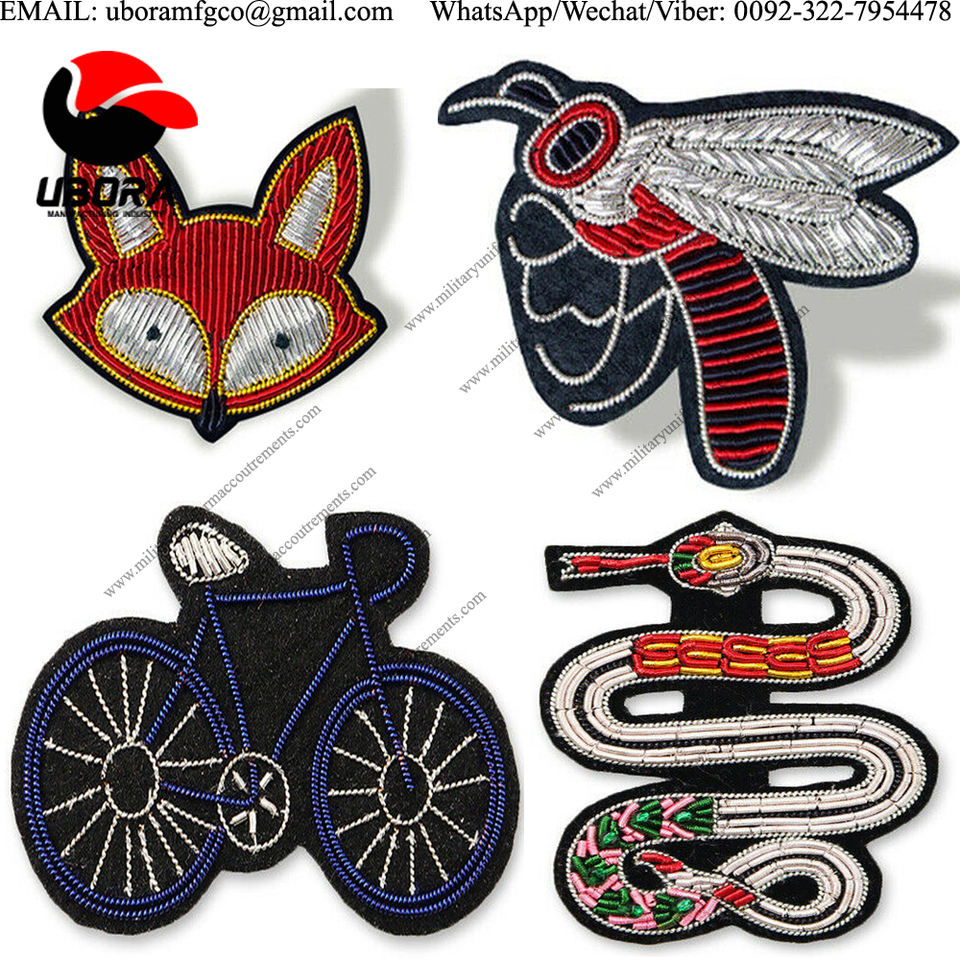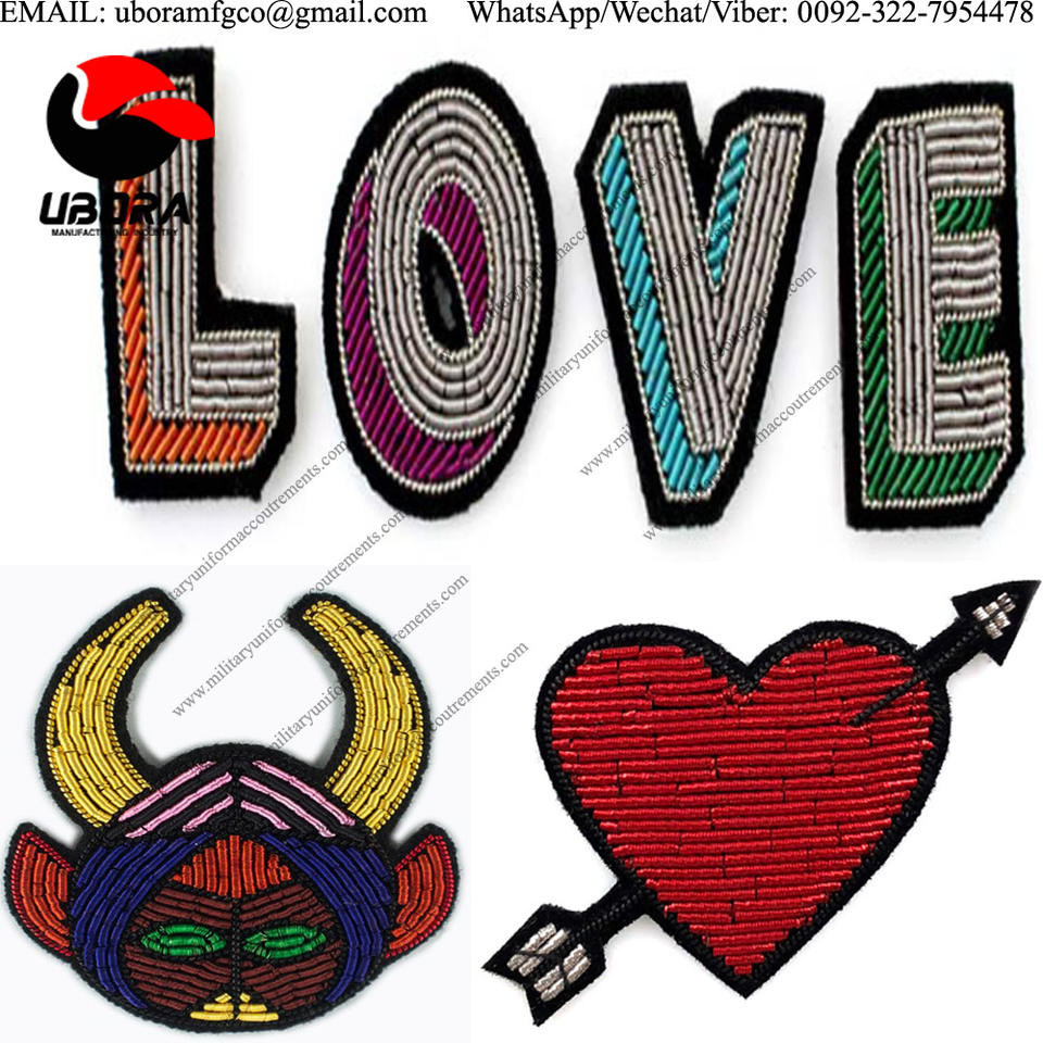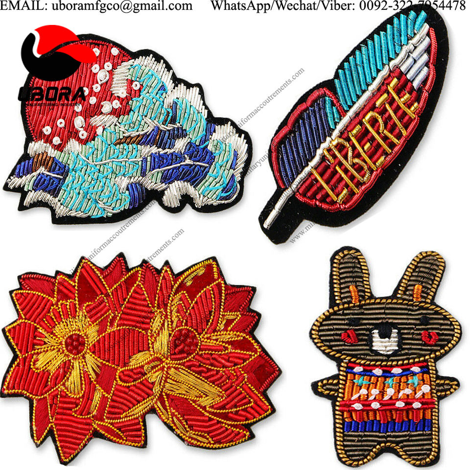 Broches et badges de fil de lingot brodés à la main en cuivre Patchs personnalisés Service OEM de haute qualité
