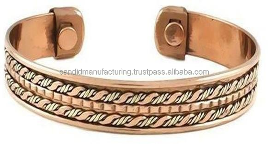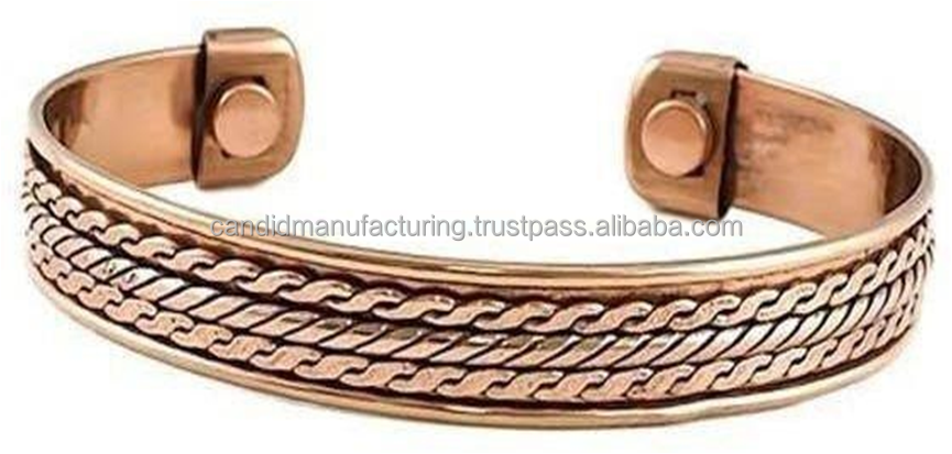 Bracelet magnétique en cuivre Bracelet de thérapie de l'arthrite en cuivre naturel pur Bracelet avec aimant