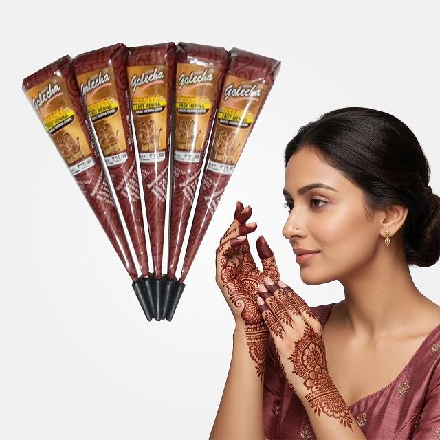 Cône de henné traditionnel couleur cuivre bordeaux prêt à l'emploi, pâte lisse pour mariages, fêtes et créations artistiques