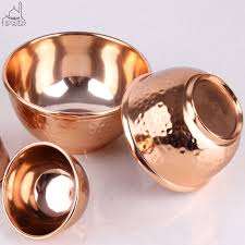 Ensemble de 3 bols de mélange en cuivre en acier inoxydable avec produit fait à la main et 4 pièces en vente