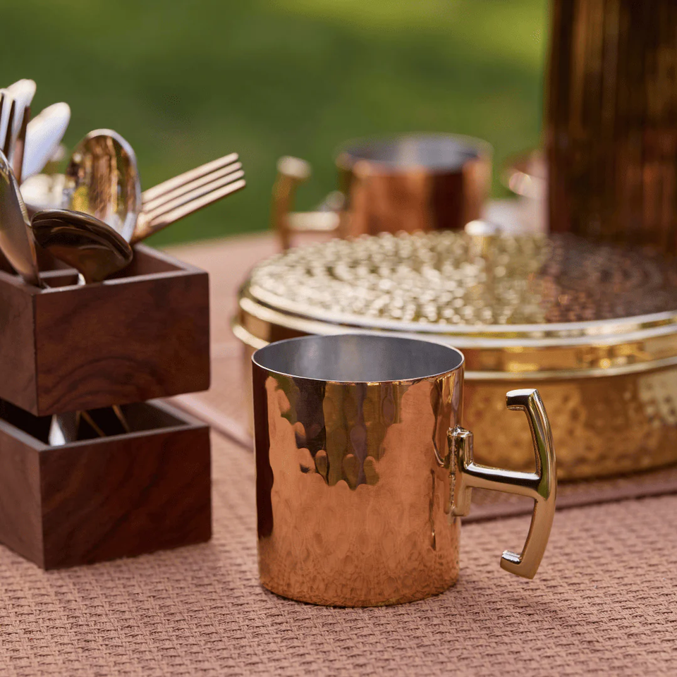 Tasse en cuivre 2 conception martelée vente chaude tasse à café de conception irrégulière créative et ensemble de soucoupe fabrication prix le plus bas