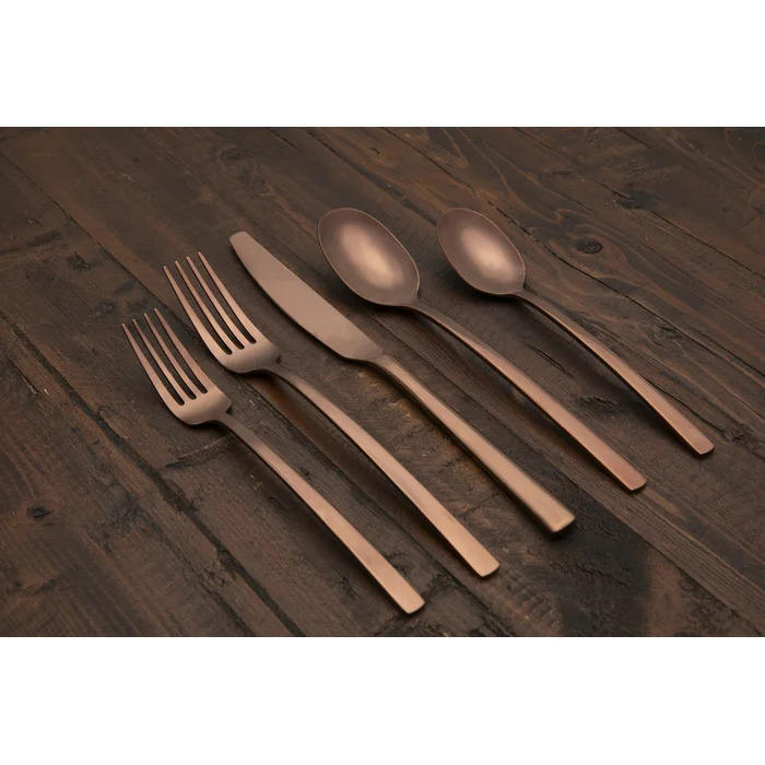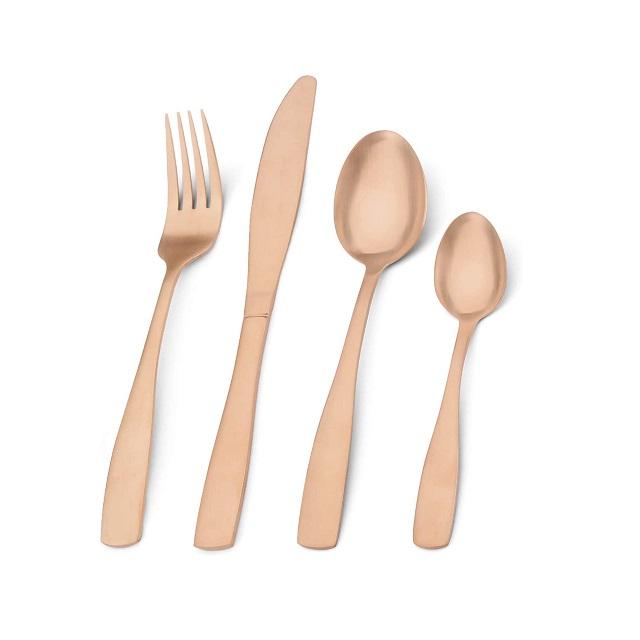 Ensemble de couverts en métal plaqué cuivre avec poignée carrée de créateur pour la vaisselle de table à manger à la maison