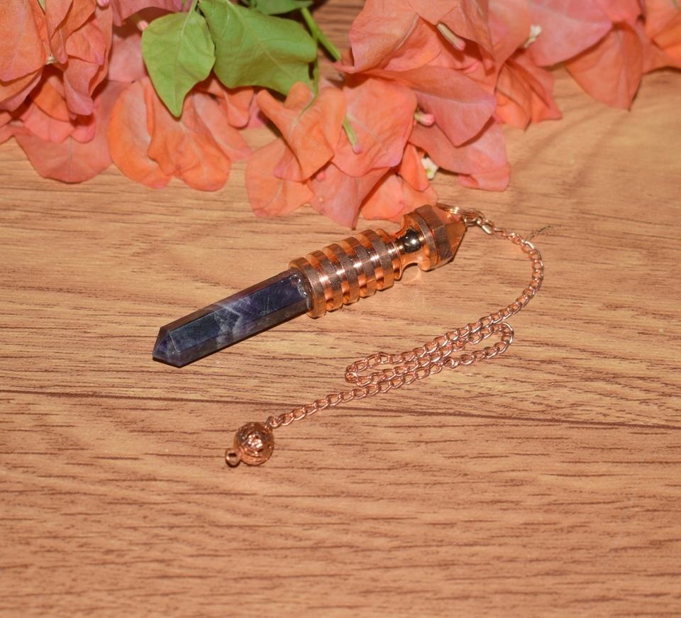 Cuivre Plaqué Métal Pendule avec Améthyste Crayon I 5 Bague Isis Ouvrable Pendule JE Pendule En Métal