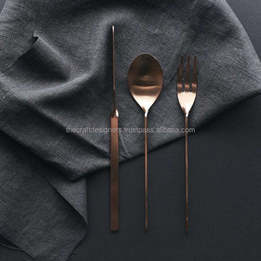 Ensemble de 3 couverts en cuivre plaqué cuivre, cuillère, fourchette et couteau, pour anniversaire, fiançailles, décoration de table