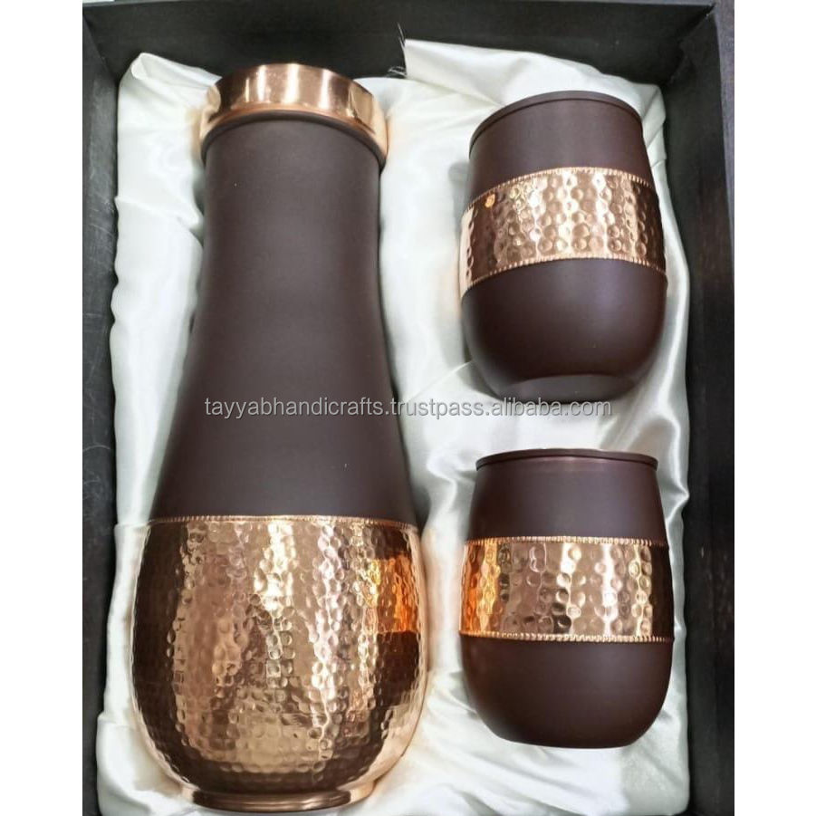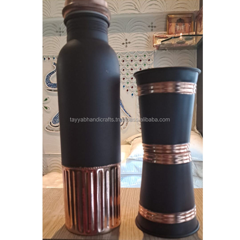 Copper Printed Water Bottle Eco-Friendly Stylish Design With Two Glass Printed Copper Water Bottle 1 Litter Leak Proof