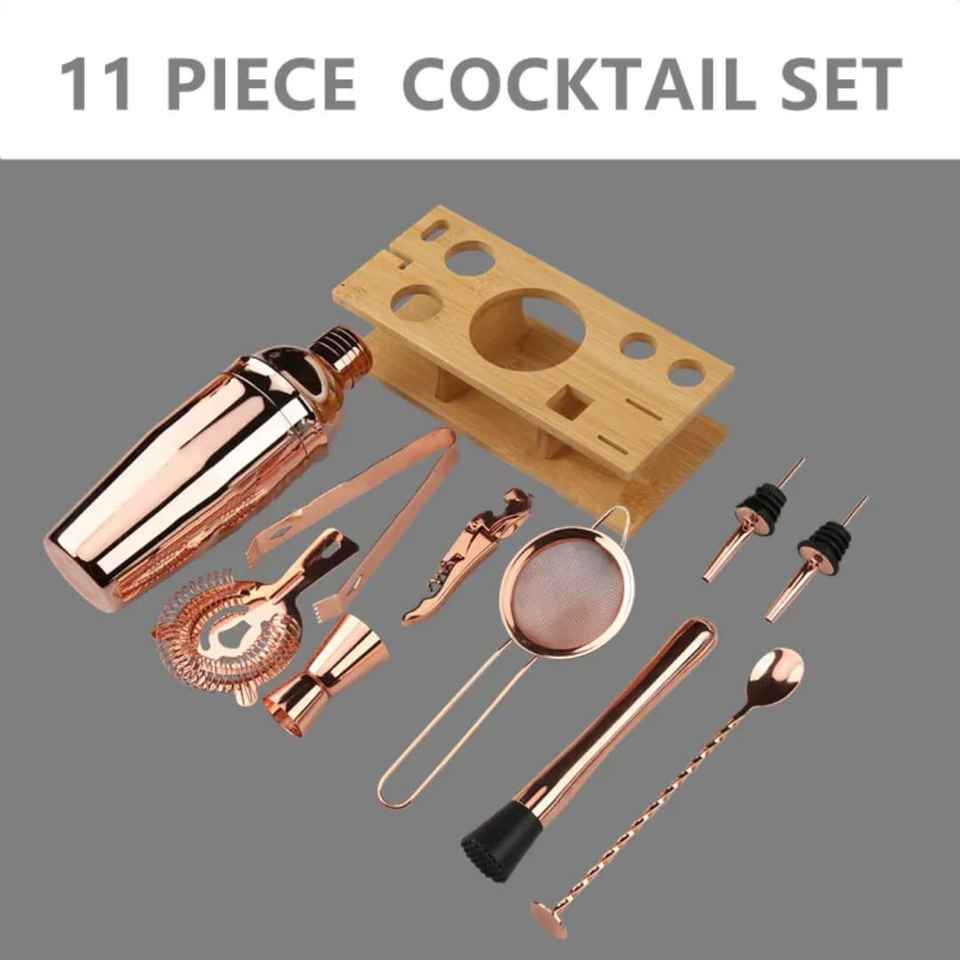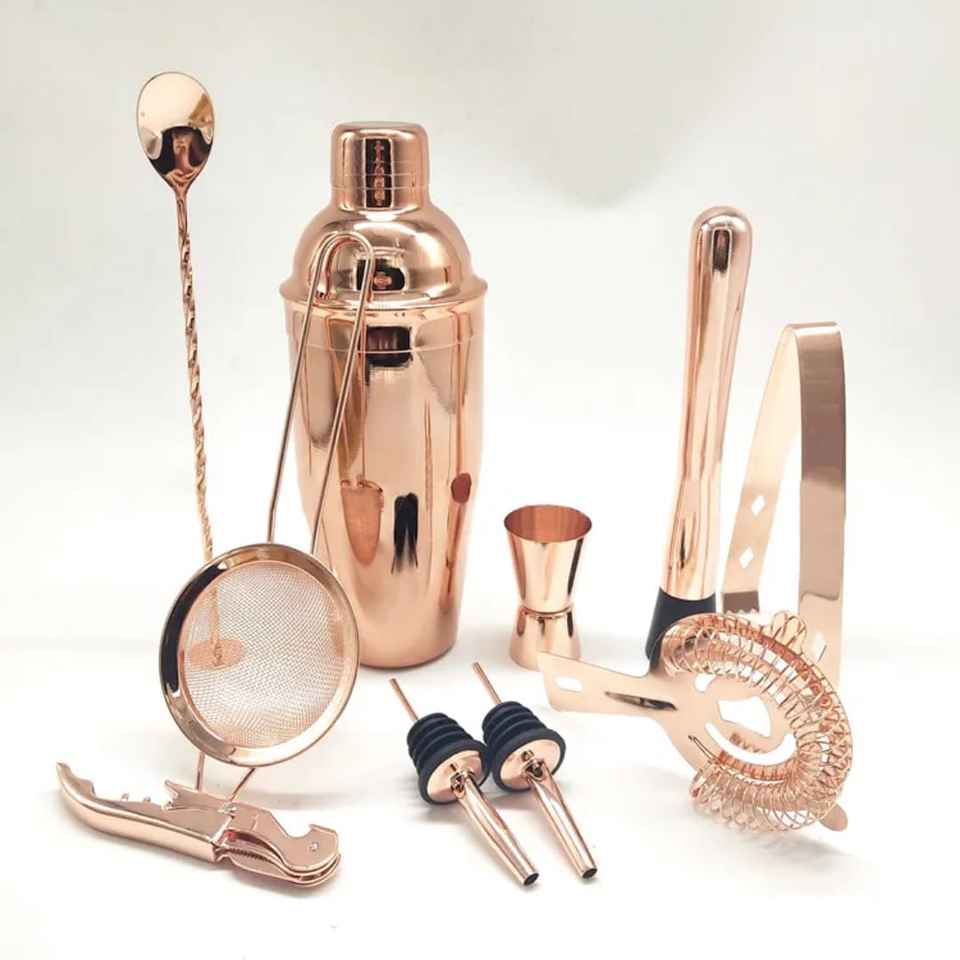 Kit d'outils de barman professionnel en cuivre avec shaker Boston et ensemble de shakers à cocktails, support en bambou 12 pièces, capacité 500 ml