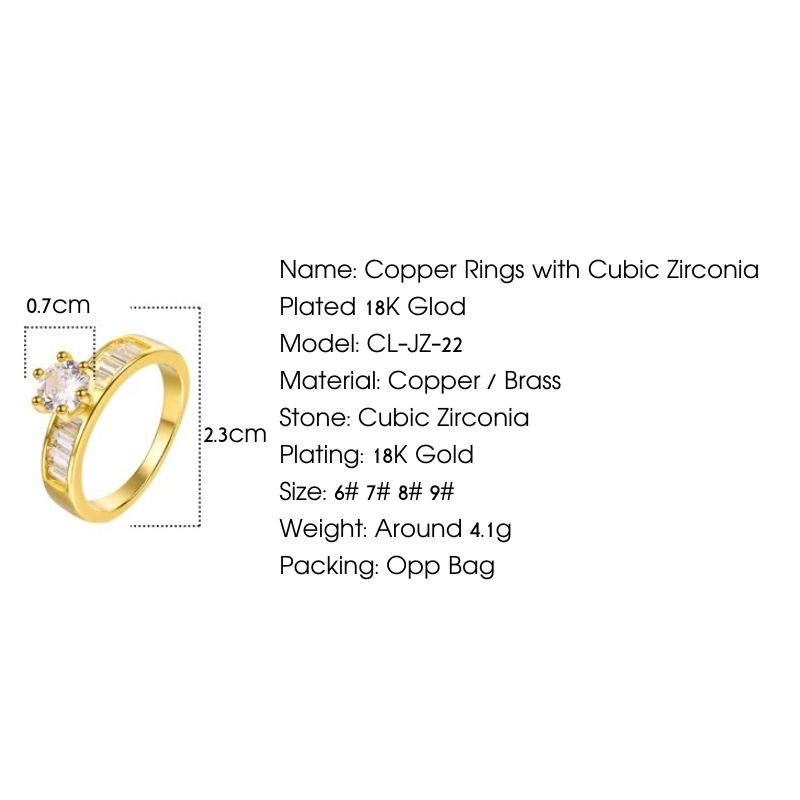 Bague de mariage tendance pour femme en cuivre plaqué or 18 carats avec zircon cubique, bijoux de mode