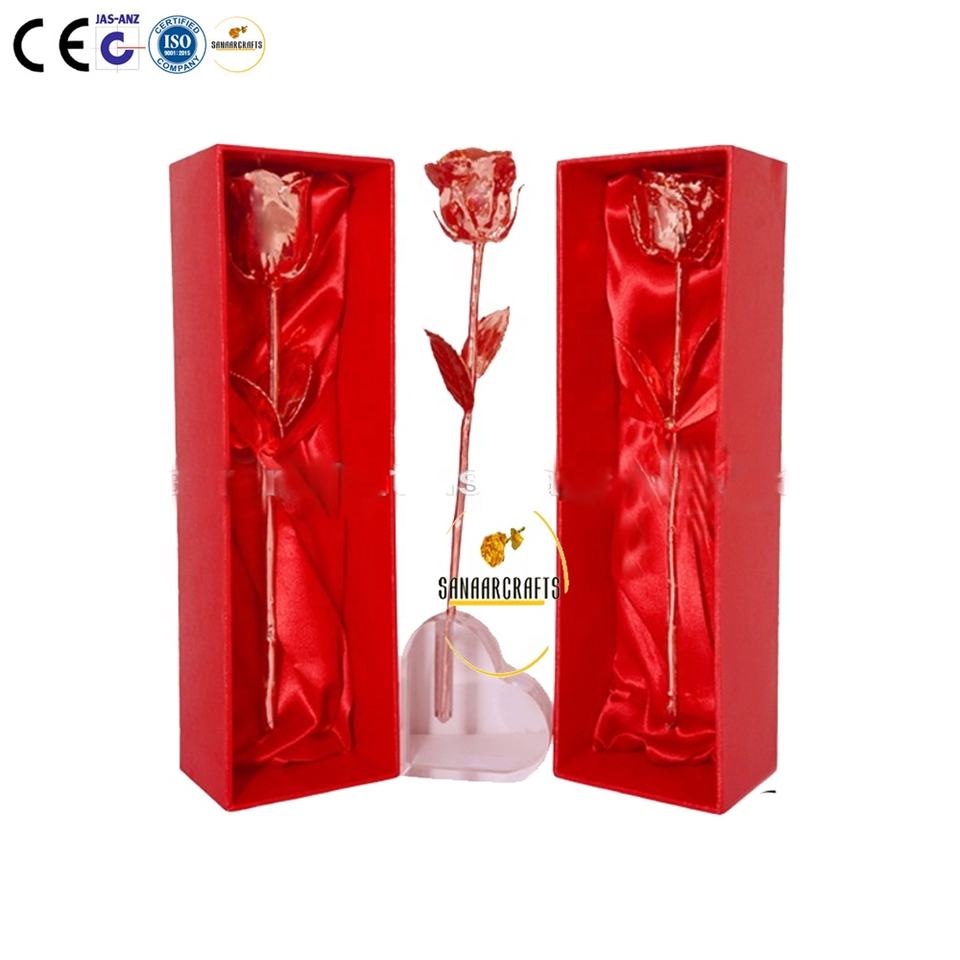 Rose en cuivre avec boîte cadeau, fleur naturelle de haute qualité, rose véritable trempée dans l'or 24 carats avec boîte