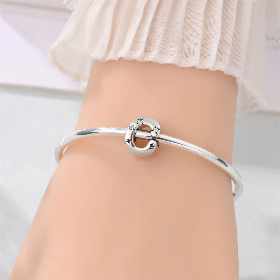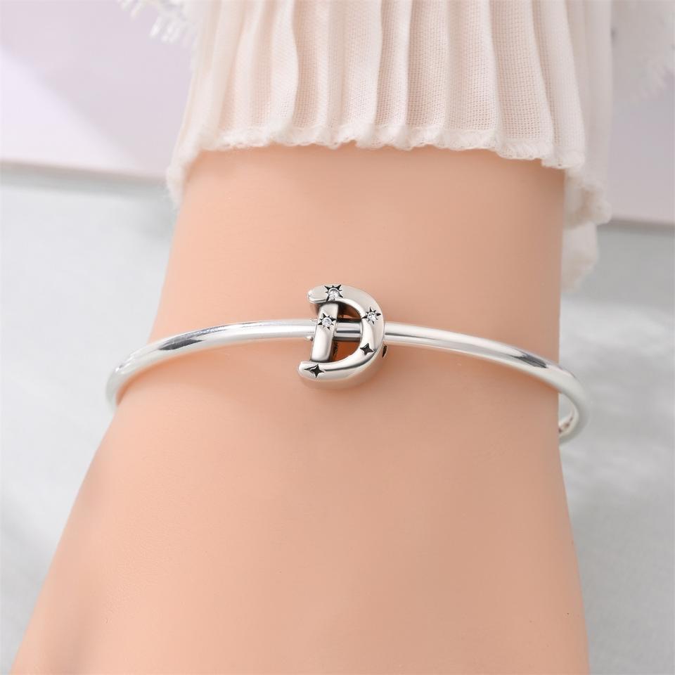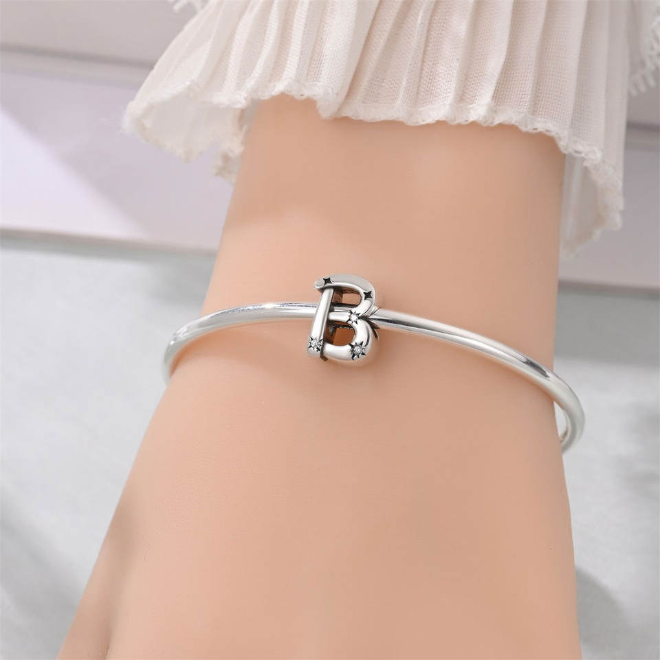 Perles breloques en cuivre plaqué argent, alphabet étoilé 26 lettres, avec zircon cubique, compatibles avec bracelets européens, pour bijoux initiaux DIY