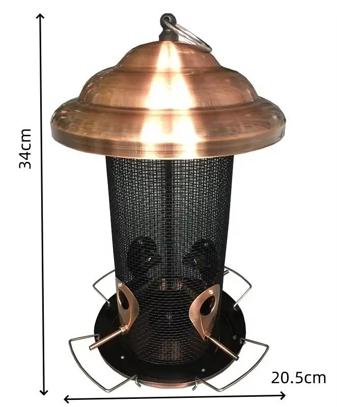 Mangeoire à oiseaux en métal extra large de style cuivre pour l'extérieur avec 4 ports d'alimentation, mangeoires à oiseaux pour l'extérieur