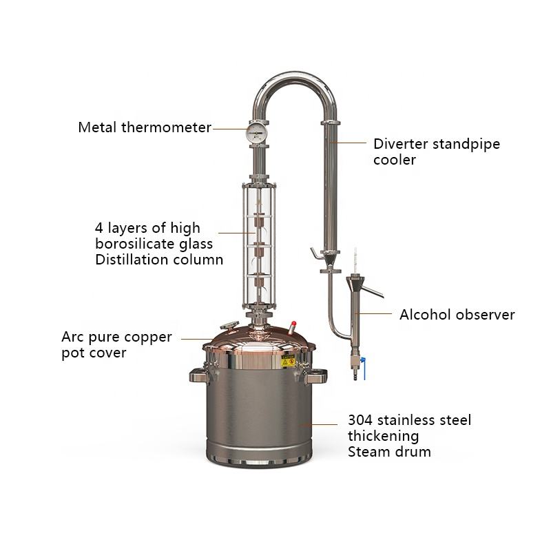 Alambic en cuivre pour la maison, alambic à alcool, alambic à vodka, alambic à gin
