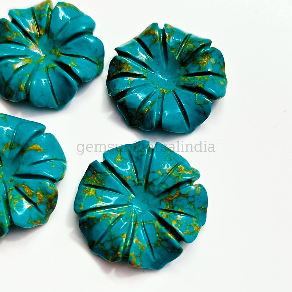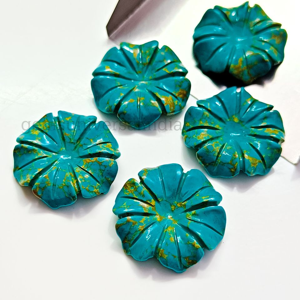 Nom du produit:Pierre gemme sculptée par fleur de cuivre de turquoise