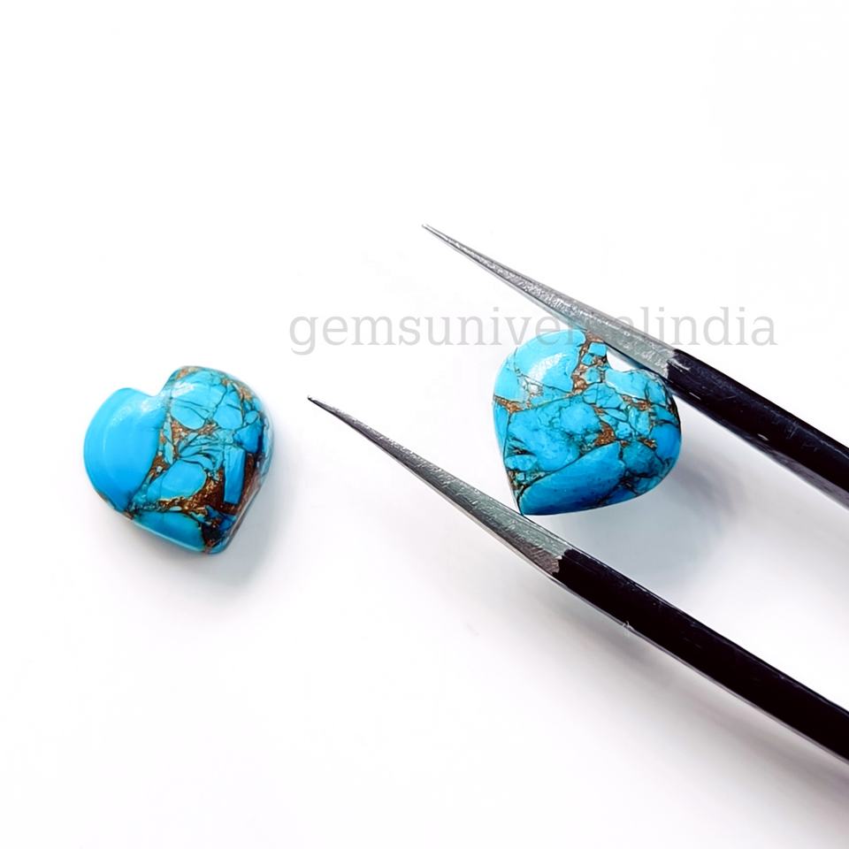 Cabochons en turquoise cuivrée lisses sculptés à la main en forme de cœur 10 MM Turquoise fantaisie Pierre précieuse en vrac pour la fabrication de bijoux en gros