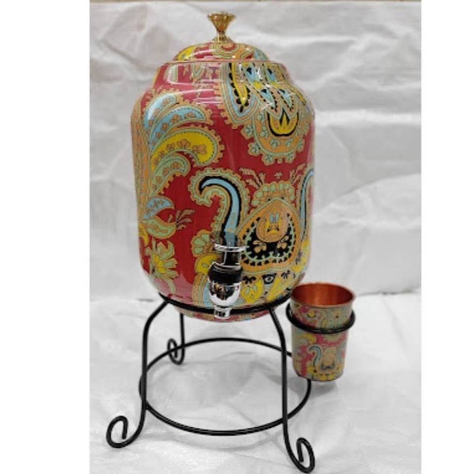 Pot d'eau en cuivre Articles de table de mariage Pot de distributeur d'eau en cuivre Artisanat Brillant Poli Verres Pot imprimé