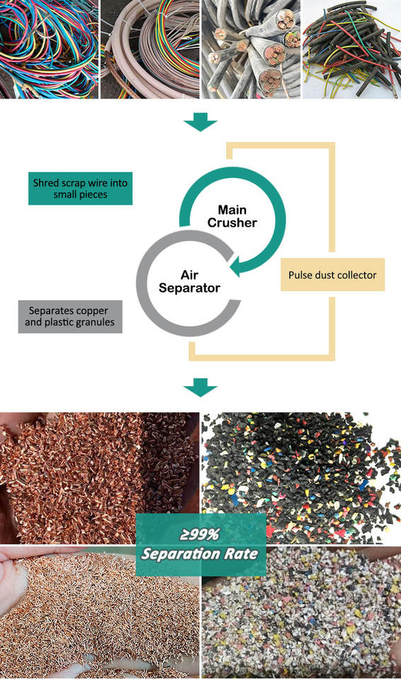 Fonction:Broyage de câbles usagés et séparation du cuivre