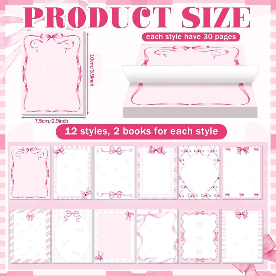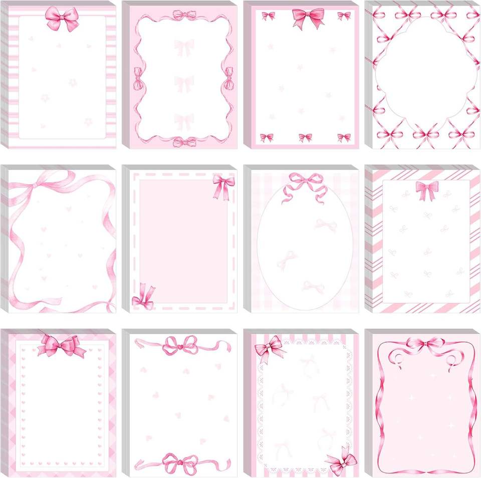 Ensemble de notes autocollantes Coquette avec nœud rose, blocs-notes autocollants, marque-pages, fournitures de bureau pour la rentrée scolaire, mémo