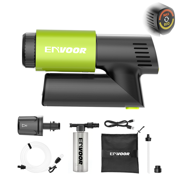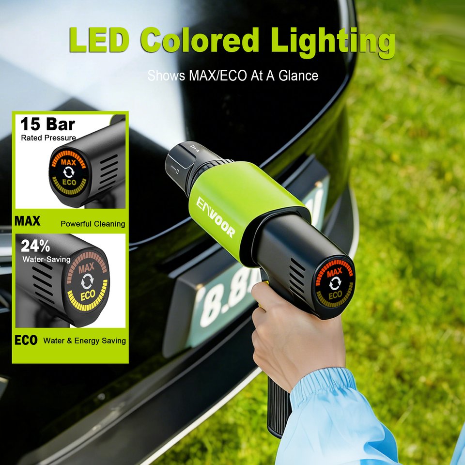 Nettoyeur haute pression sans fil, poignée pliable, éclairage LED affichant MAX/ECO, buse 4 en 1, 5 accessoires inclus