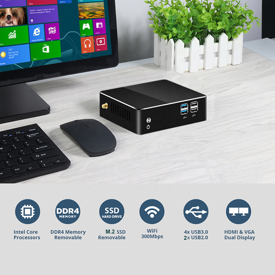 Core i3 7100U Slim Mini PC Micro ordinateur de bureau de poche carte mère unique DDR4 M.2 SSD 4K NUC TV BOX HTPC