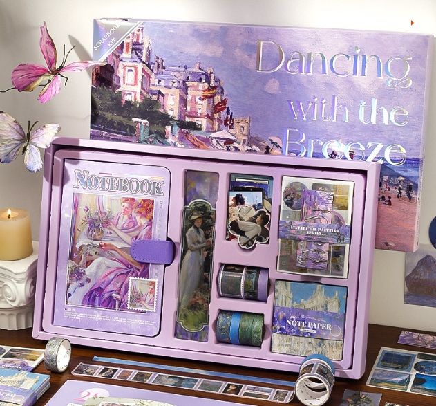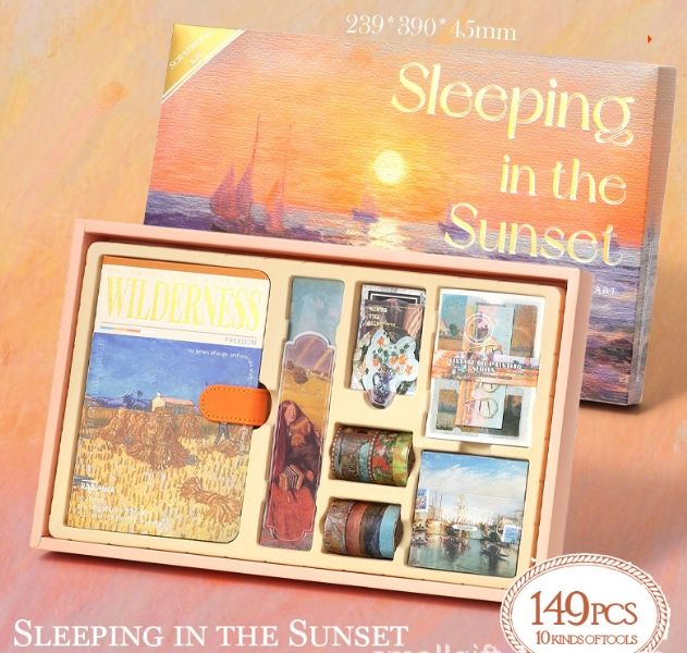Core Mo rétro peinture à l'huile en cuir relié compte à la main livre ensemble boîte-cadeau organisateur/planificateur haute valeur de beauté mignon doux fille