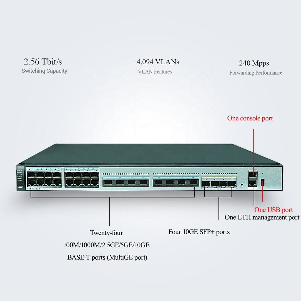 Ports fixes:24 ports Ethernet de base-T de x 100M/1G/ 2.5G/5G/10G 4x10 GE SFP +