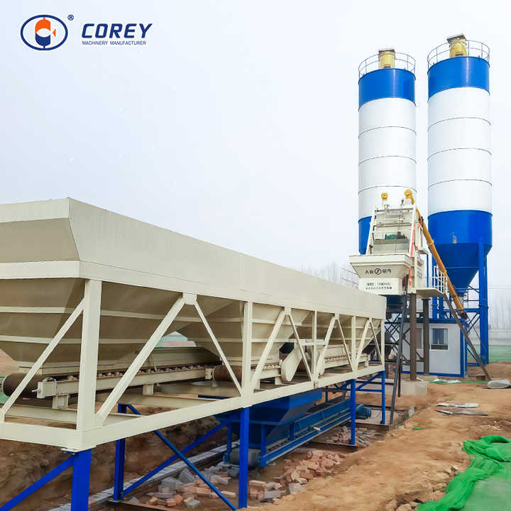 Ligne de production de pompes PLC entièrement automatique Corey avec élévateur à godets, moteur électrique ou diesel pour le mélange de béton prêt à l'emploi