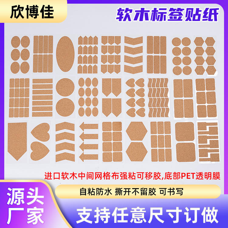 Étiquettes autocollantes en liège, formes rondes, carrées et irrégulières, imperméables, fournitures artisanales
