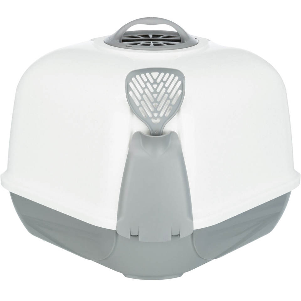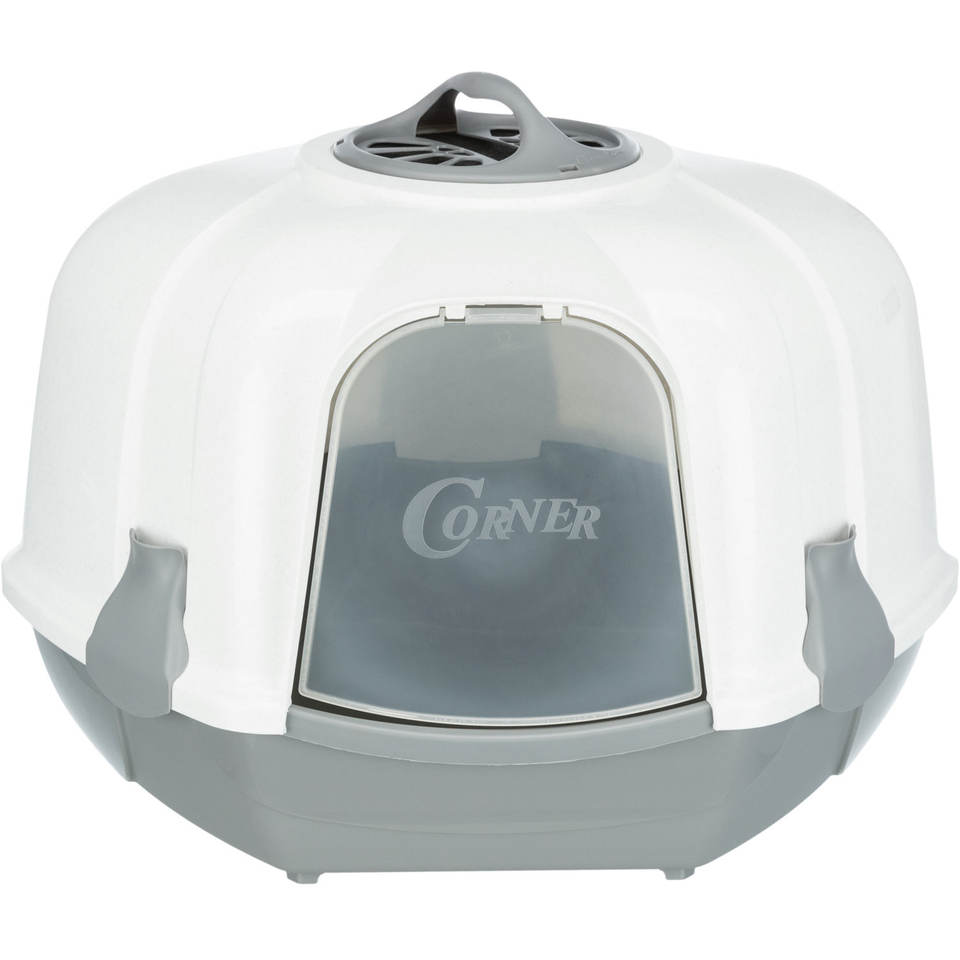 Bac à litière d'angle pour chat 60x43x52 cm gris clair granit avec pelle incluse