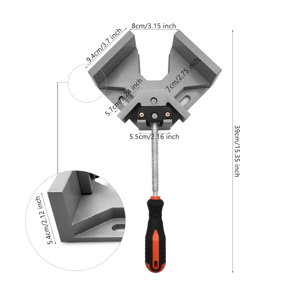 Pince d'angle 2 pcs-Pince à angle droit à 90 degrés-Pince d'angle à poignée unique avec mâchoire pivotante réglable en alliage d'aluminium
