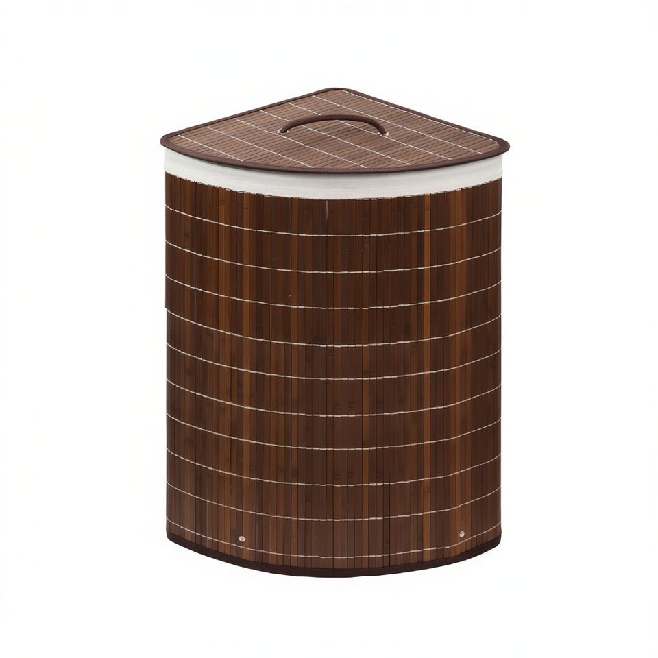 Panier à linge d'angle 39 cm de largeur, 68 cm de longueur, design bambou blanc, rangement pour vêtements et linge