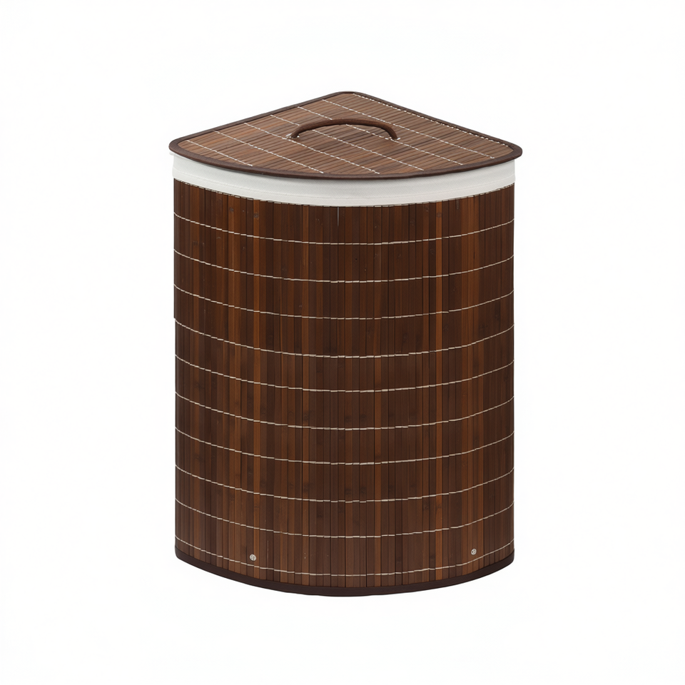 Panier à linge d'angle 68 cm de longueur en bambou naturel pour usage domestique