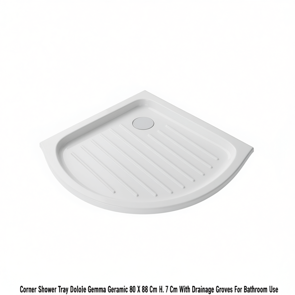 Receveur de douche d'angle en céramique Dolomite Gemma 80 x 80 cm H. 7 cm avec rainures de drainage pour salle de bain