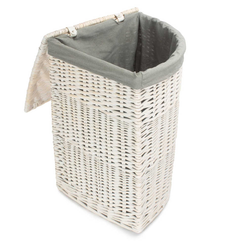 Corner White Wash Wicker Laundry Hamper with Grey Sage Lining