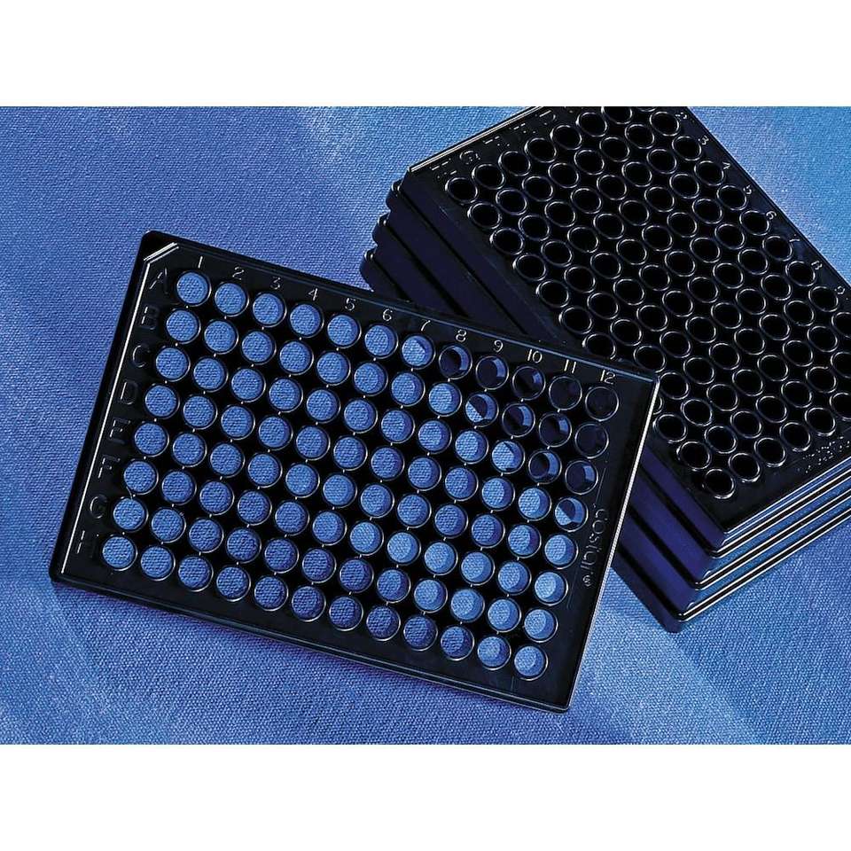 Corning CellBIND Microplaque 96 puits à fond plat transparent jetable couvercle stérile en polystyrène noir avec matériaux PTFE PP PE PS