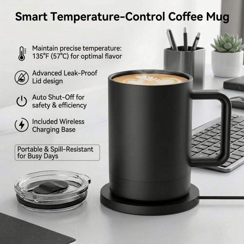 Large capacity, Affichage de la température, Avec couvercle, Double paroi, Affichage mené de la température, Isolé, Contrôle de température, Chargeur sans filDispositif