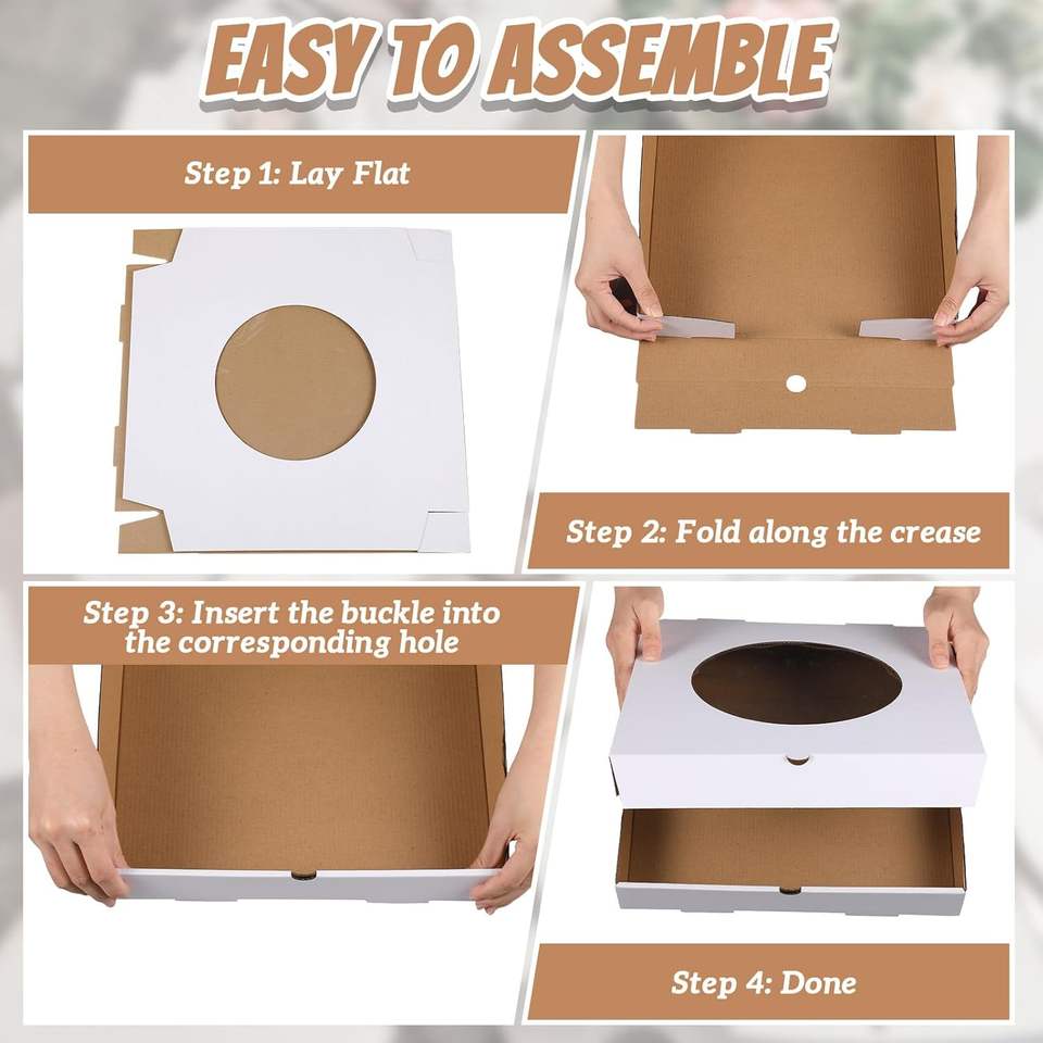 Boîtes à pizza ondulées avec fenêtre transparente, contenants carrés blancs à emporter pour la cuisson, récipients jetables pour la présentation des aliments
