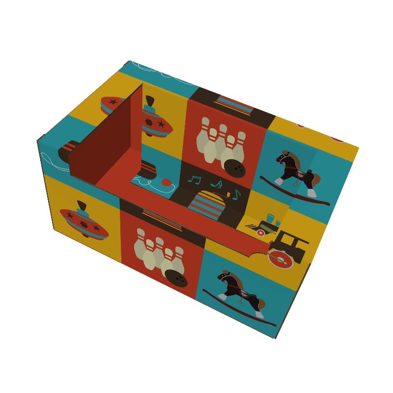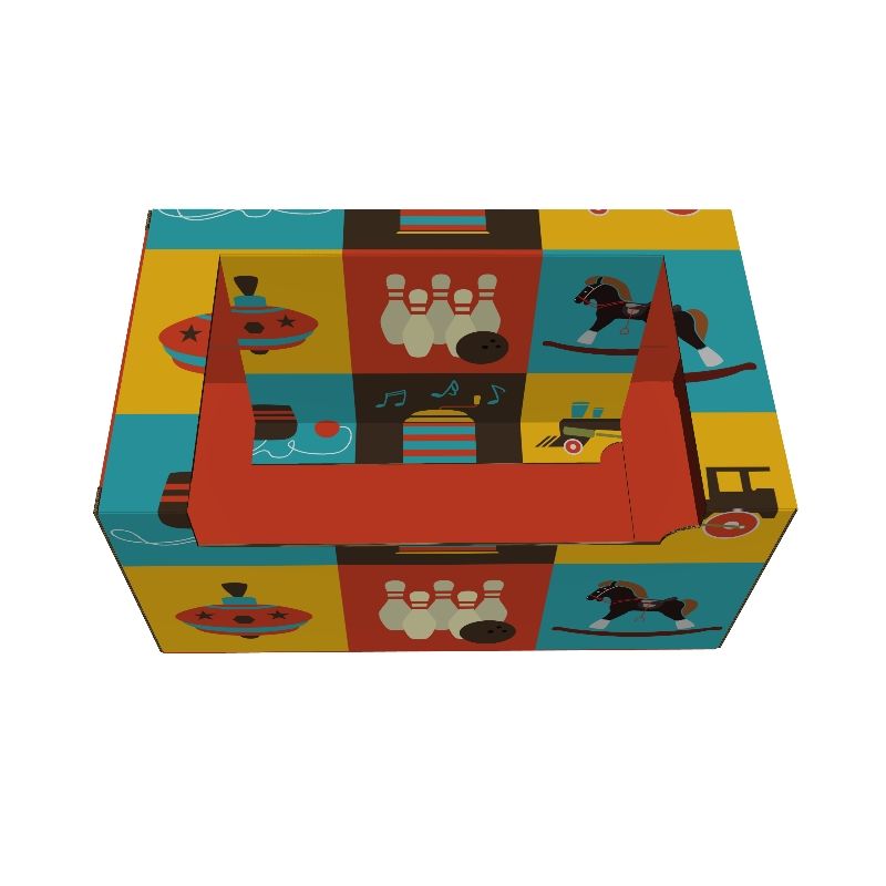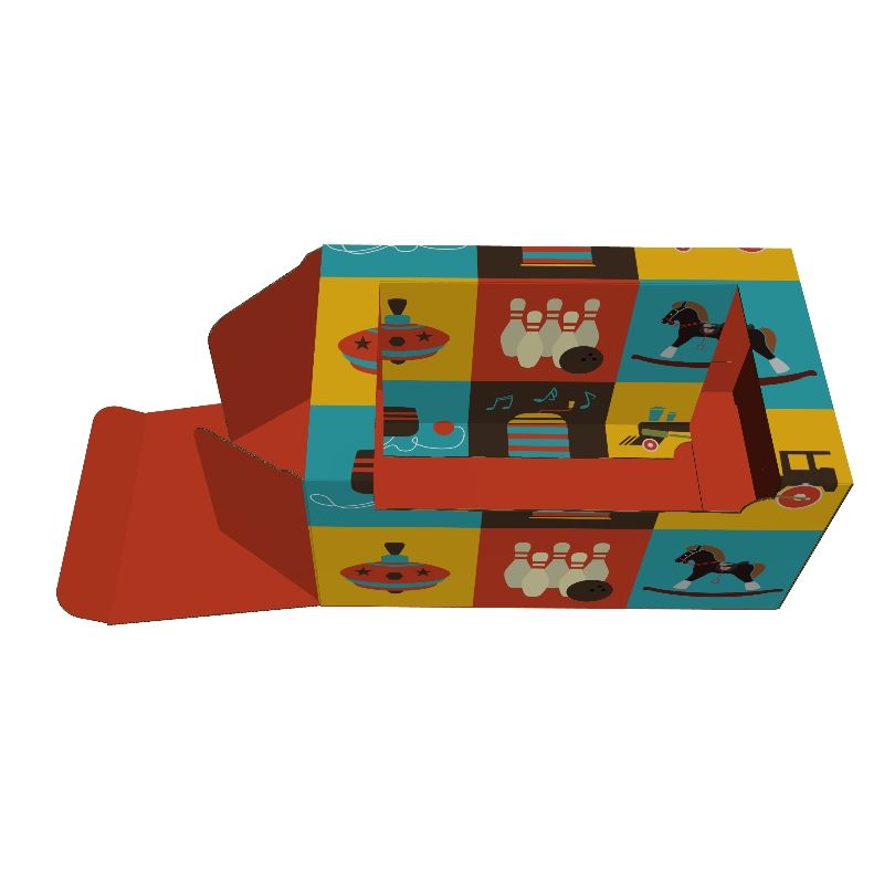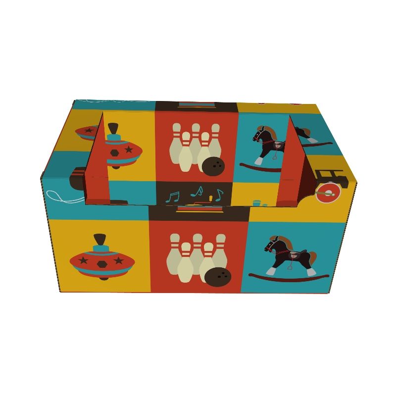 Boîte de papier jouet ondulé avec fenêtre UV Matté finition vernissage impression manipulation affichage emballage
