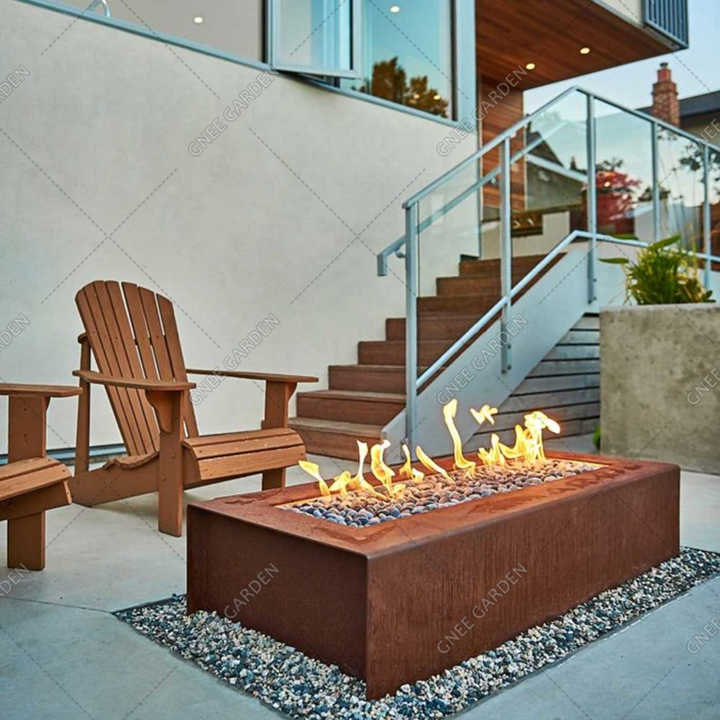 Cheminée extérieure au gaz sans fumée, moderne, portable, rectangulaire, en acier corten, durable, résistant à la rouille, pour la cour
