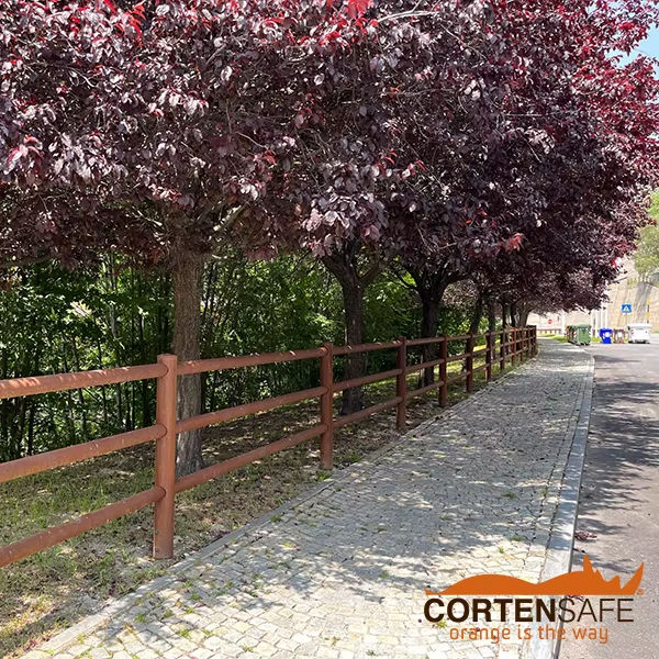 Corten Steel Fence for Gardens and Parks Brunico H3C Height 1100 mm Interaxis 2000 mm UNP Fixing System