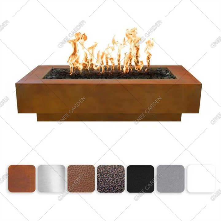 Brasero au sol rectangulaire en acier Corten, moderne, robuste, durable, résistant à la rouille, sans fumée, au propane, manuel
