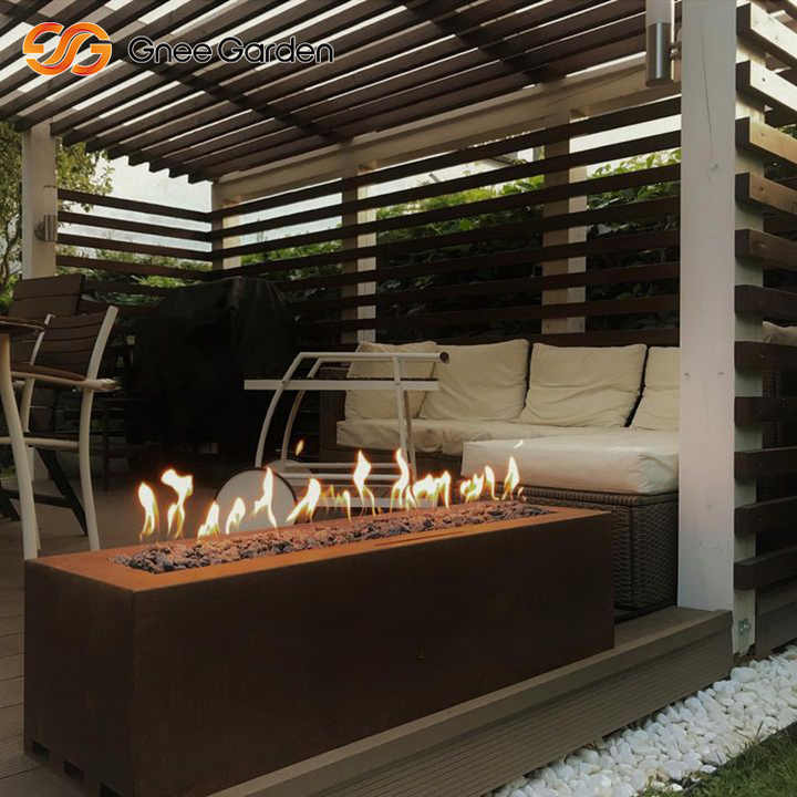 Table de table sur pied en acier Corten de style rustique à gaz cuboïde pour le chauffage extérieur moderne
