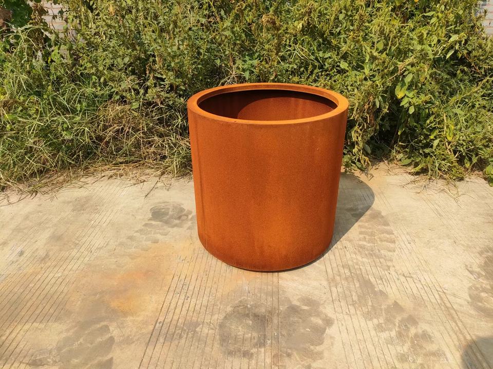 Pots de jardin en acier corten, métal rouillé, traitement anti-érosion.