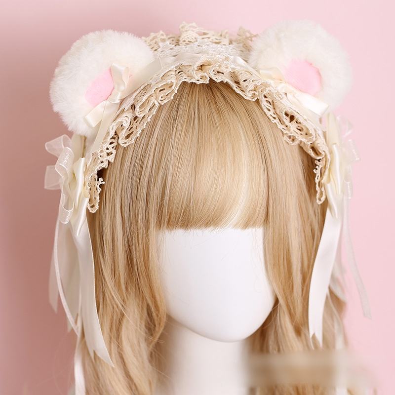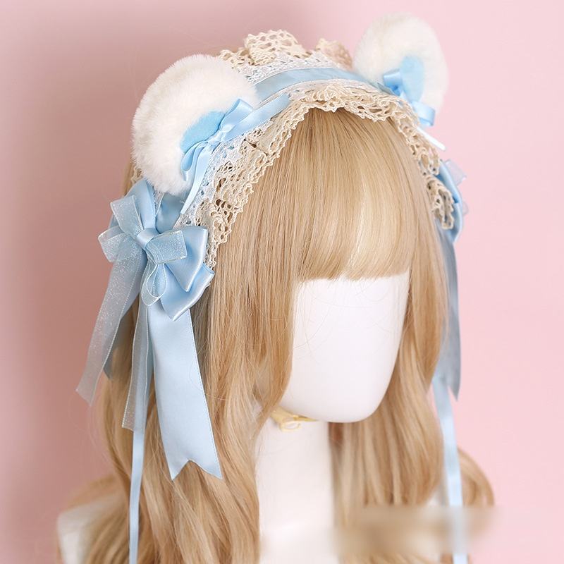 Accessoires de cheveux Lolita pour fête du thé Cos Comic-Con, nœud en peluche à pois, bandeau pour les oreilles, couvre-chef japonais pour filles, haute qualité, multifonction