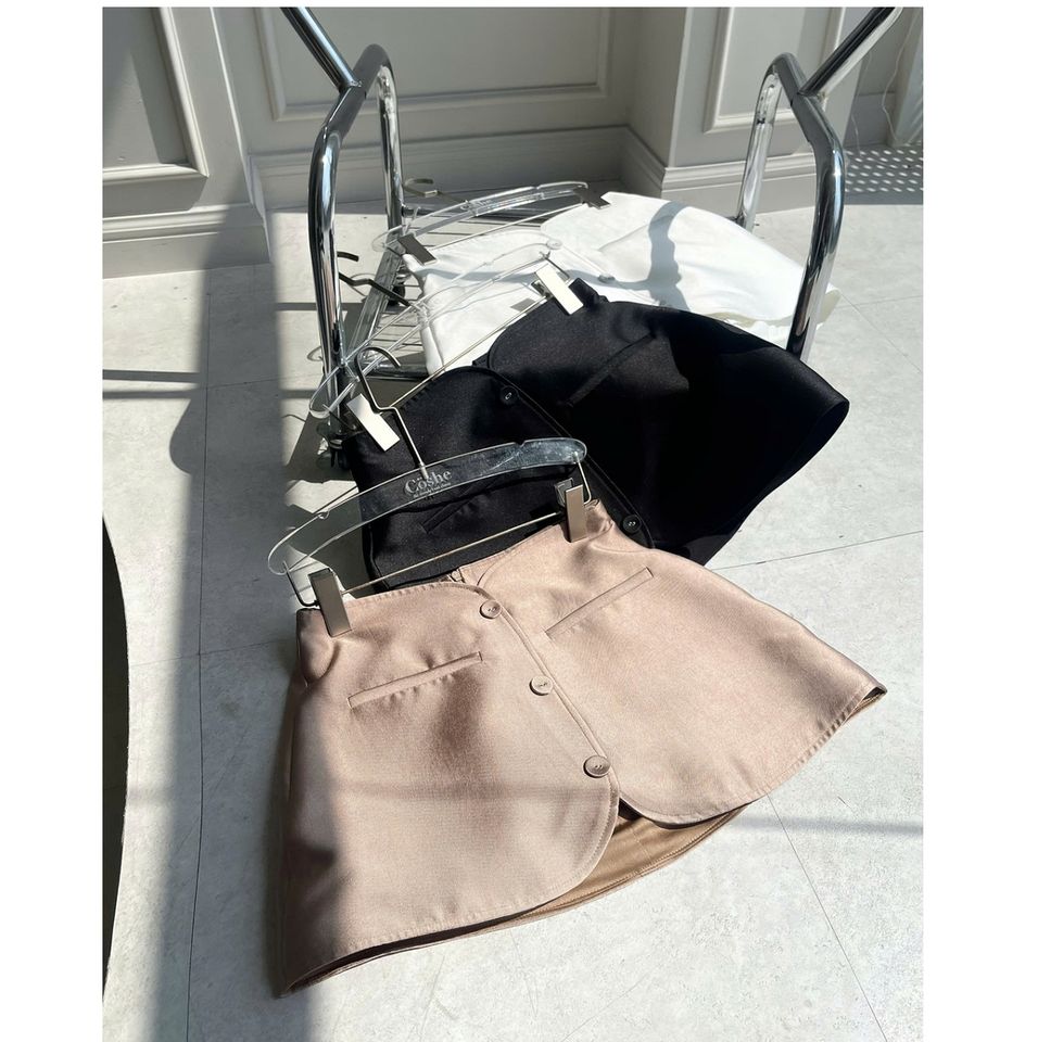 Coshe Alice Jupe courte décontractée à boutons brodés sur le devant pour femme Forme féminine Matériau doux et respirant Fabriqué en été