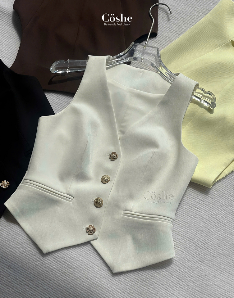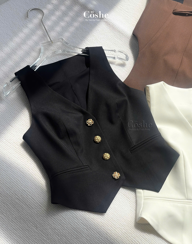 Coshe Kylie Top Elegant Sleeveless V Neck Vest Blouse Made With Soft Fabric Easy To Pair With Skirt Pants For Work Or Outing
