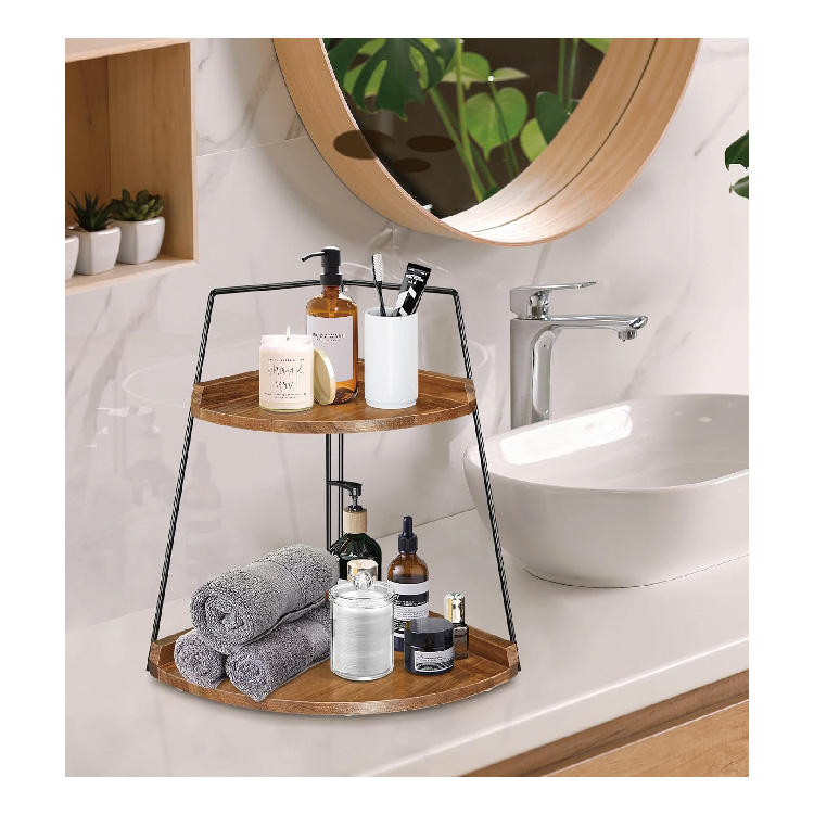 Étagère de salle de bain cosmétique étagère de rangement organisateur Double couche armoires de cuisine en bois étagère de rangement d'angle